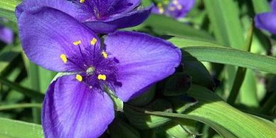 The purple flowers on this plant open during the morning and close by the evening in sunny weather. They stay open longer on cloudy days!