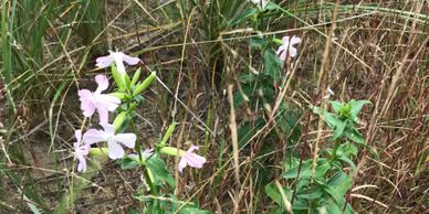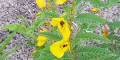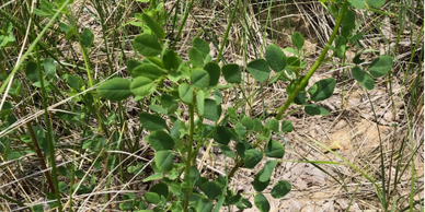 This prolific “volunteer” (that is, a plant that came on its own) can be seen throughout our sandy areas, even twining up some of our shrubs.